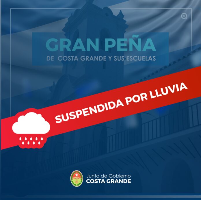 Por las condiciones climáticas, se suspendió la Gran Peña de Costa Grande y sus escuelas. El evento estaba previsto para este domingo 28 de mayo y los fondos recaudados iban destinados a las instituciones educativas de esa localidad del departamento Diamante.