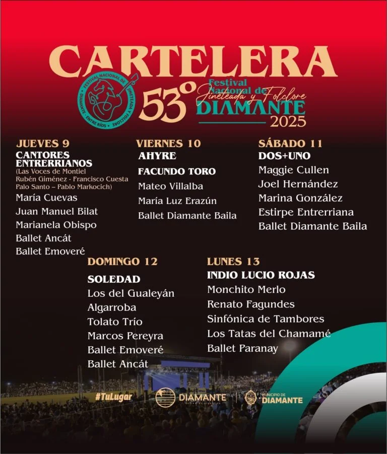 - Beneficio para diamantinos: Durante la preventa (sábado 11, domingo 12 y lunes 13), los residentes de Diamante, Strobel y Ejido podrán adquirir entradas a un precio especial de $20.000.