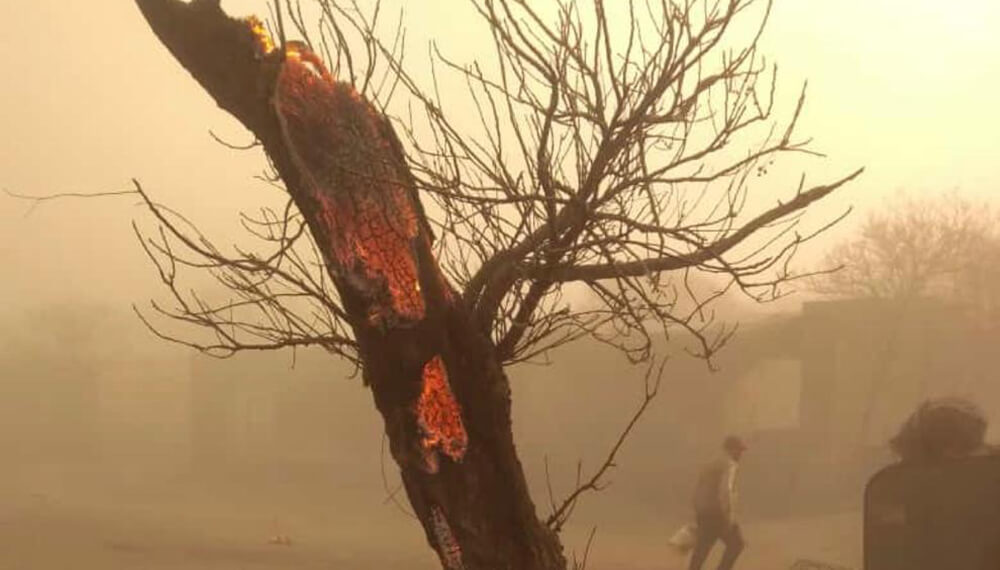 El protagonista de la imagen es Sergio Cotoloni, de 43 años. Un productor agrícola-ganadero de Reducción, una localidad ubicada sobre la Ruta 8, entre Río Cuarto y La Carlota. Desde el sábado, Sergio combatió el fuego que recorrió unos 20 kilómetros desde Bengolea hasta la Ruta 8, llegó a su campo y “no dejó nada a su paso”.