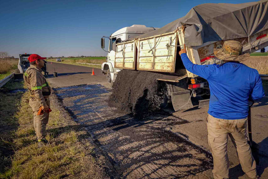 Se utilizaron cerca de 170 toneladas de mezcla asfáltica en caliente para el bacheo de los sectores que presentaban mayor deterioro y de esa manera garantizar la transitabilidad del sector productivo que se vinculan por la ruta 32.