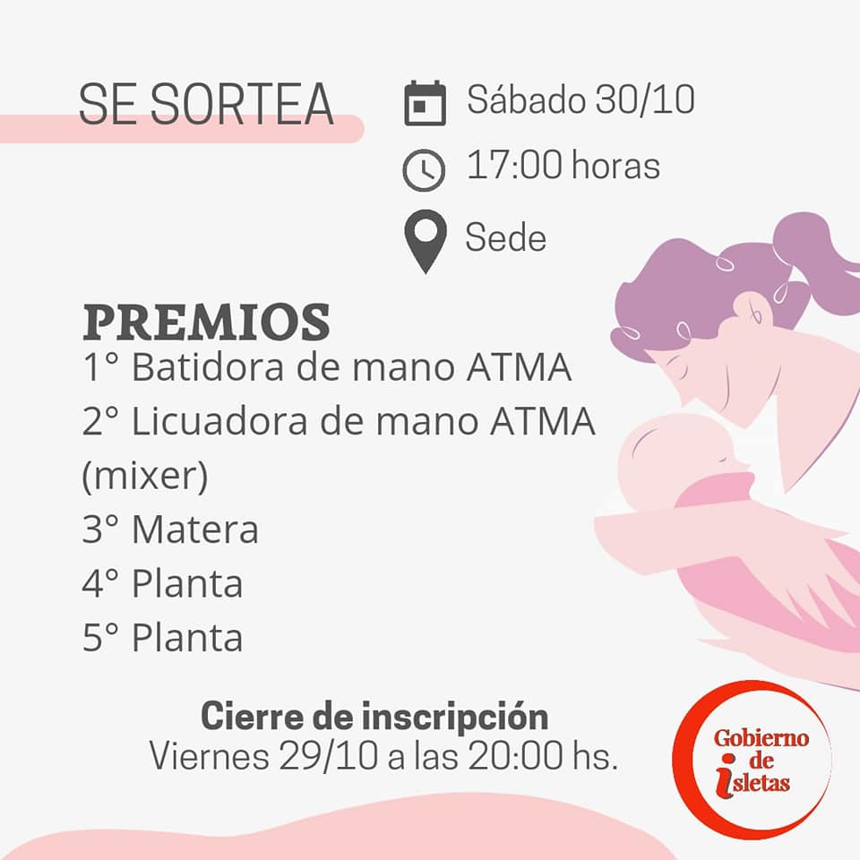 El sorteo se realizará el sábado 30 a las 17, en la sede de la Junta de Gobierno. Aclaran que es solo para madres de Isletas.