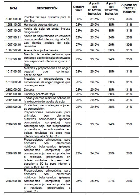 En el anexo del Decreto 790/2020 se establecieron los tributos para cada producto desde octubre 2020 hasta el 1° de enero de 2021 en adelante.