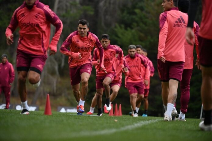 Mientras que Pablo Solari y Franco Armani se recuperaron de sus respectivas molestias físicas y trabajaron a la par del grupo, todavía entrenan de manera diferencia Gonzalo “Pity” Martínez y Rodrigo Villagra.