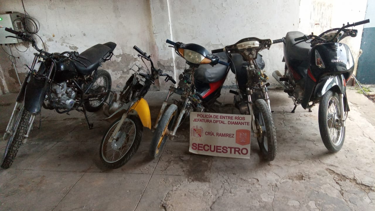 En sólo 24 horas, la Policía de General Ramírez recuperó media docena de motos que habían sido sustraídas de una dependencia pública, donde permanecen a disposición del Juzgado de Faltas de esa ciudad del departamento Diamante. En cuanto al hecho que desató la intervención, el subjefe de Comisaría Ramírez, Martín Figueroa, precisó: «Estimativamente a las 22:00 del viernes, se tomó conocimiento por parte de empleados municipales, que el portón del depósito ubicado en calle República de Entre Ríos, presentaba el candado forzado. En ese espacio se resguardan las motocicletas retenidas por infracciones de tránsito y todo indicaba que se había producido un ilícito. Inmediatamente acudió una dotación, constatándose la faltante de seis motos, de diferentes marcas y modelos».