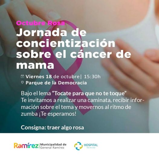 Desde la Municipalidad de General Ramírez junto al Hospital Nuestra Señora de Luján, invitan a la comunidad a participar en una jornada de concientización sobre el cáncer de mama.