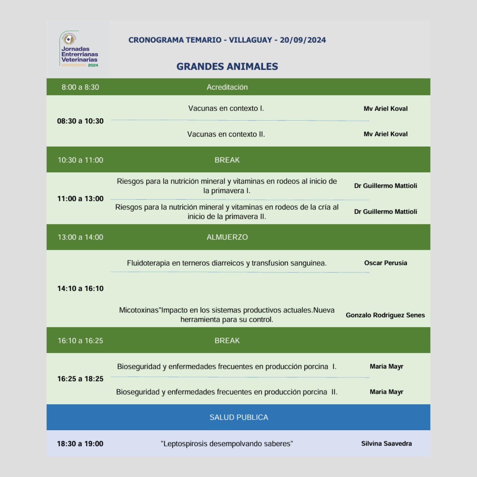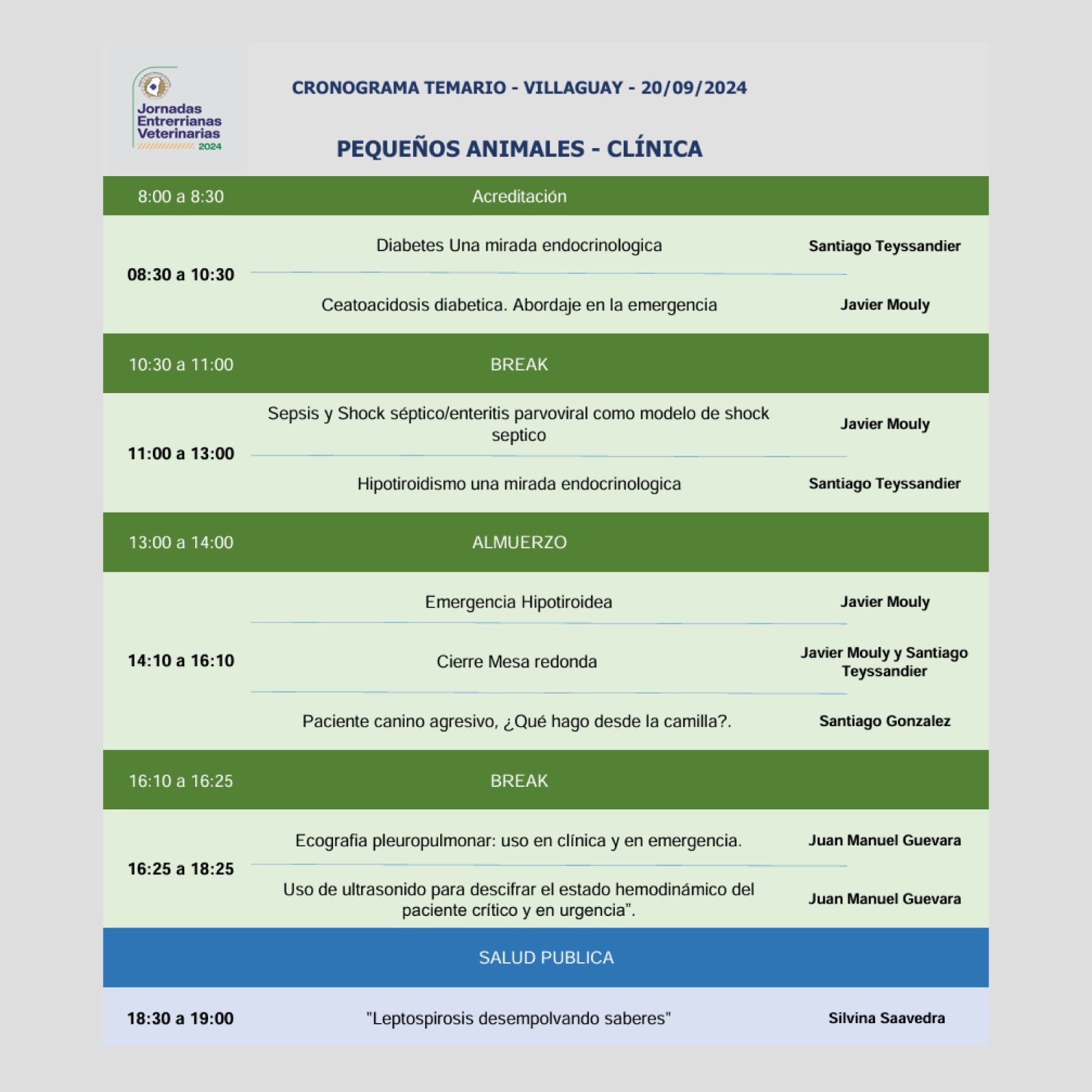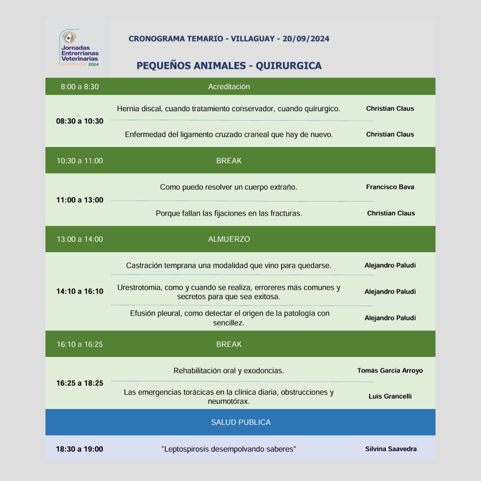 Este viernes 20 de septiembre se realizarán las Jornadas Veterinarias 2024, en Villaguay. El evento es diseñado para fortalecer el conocimiento y la práctica veterinaria y contará con un programa temático que abarca desde la cirugía para pequeños animales hasta clínica para grandes animales.