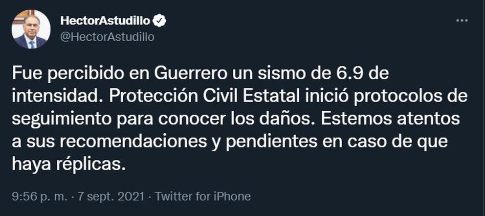 Pese a que Protección Civil de Guerrero no ha reportado daños relevantes, Astudillo Flores subrayó que la población debe estar atenta a las réplicas.