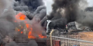 Feroz incendio en una fábrica de resina en el Parque Industrial...