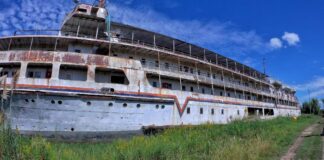 Un imponente crucero está abandonado a orillas del Río Paraná