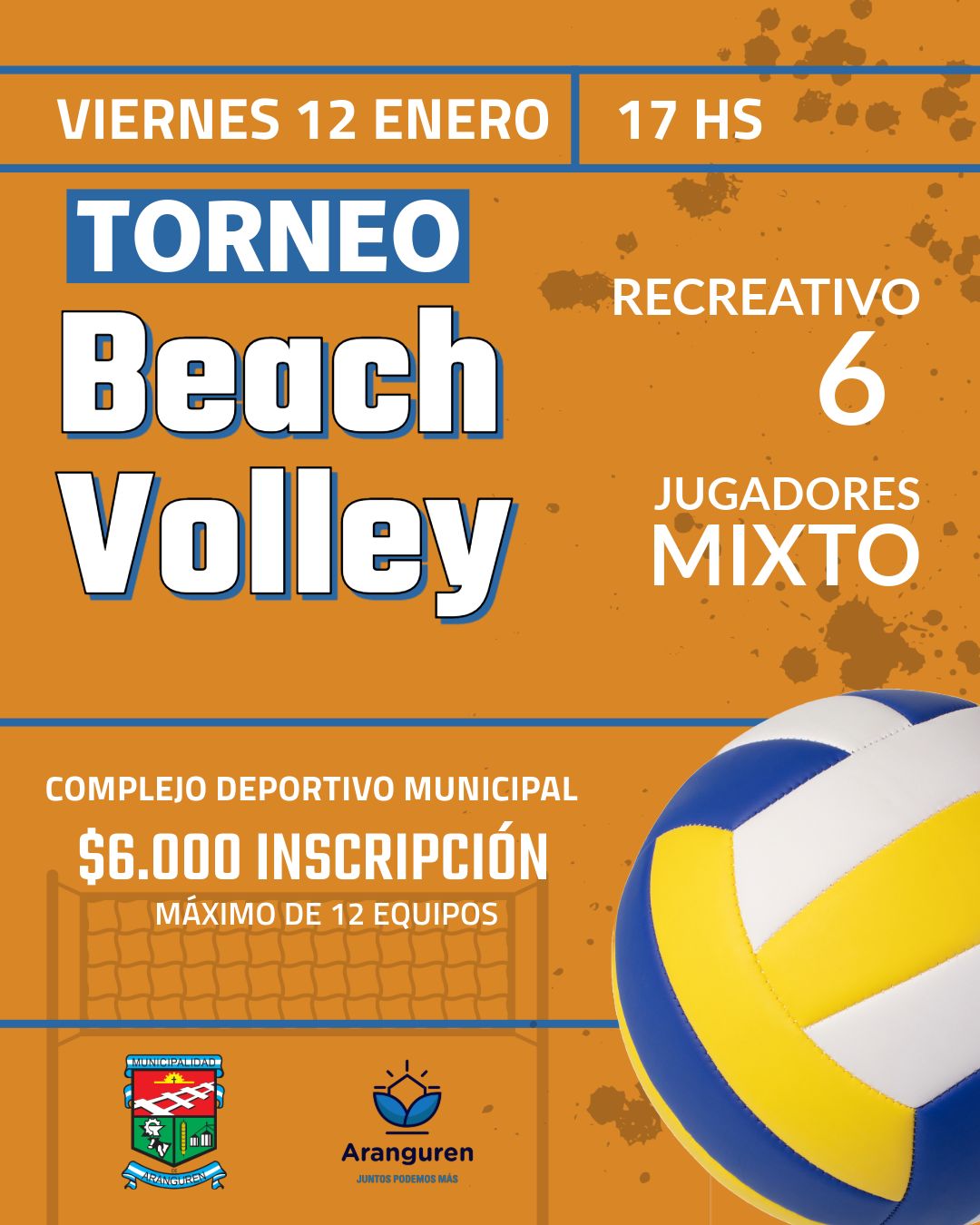 Este viernes 12 de enero, en la localidad de Aranguren, departamento Nogoyá, se realizará un Torneo de Beach Volley.