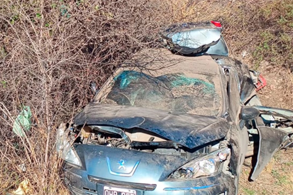 El siniestro se produjo en el kilómetro 23 de la Ruta 20, cuando la conductora de un Peugeot 408, una agente de la policía provincial, perdió el control del vehículo tras rozar un poste y volcó sobre la banquina.
