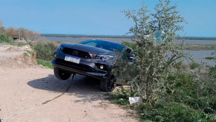 Un vehículo quedó al borde de caer por la barranca en el Parque Paz Carrera, de la ciudad de Diamante.