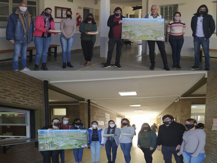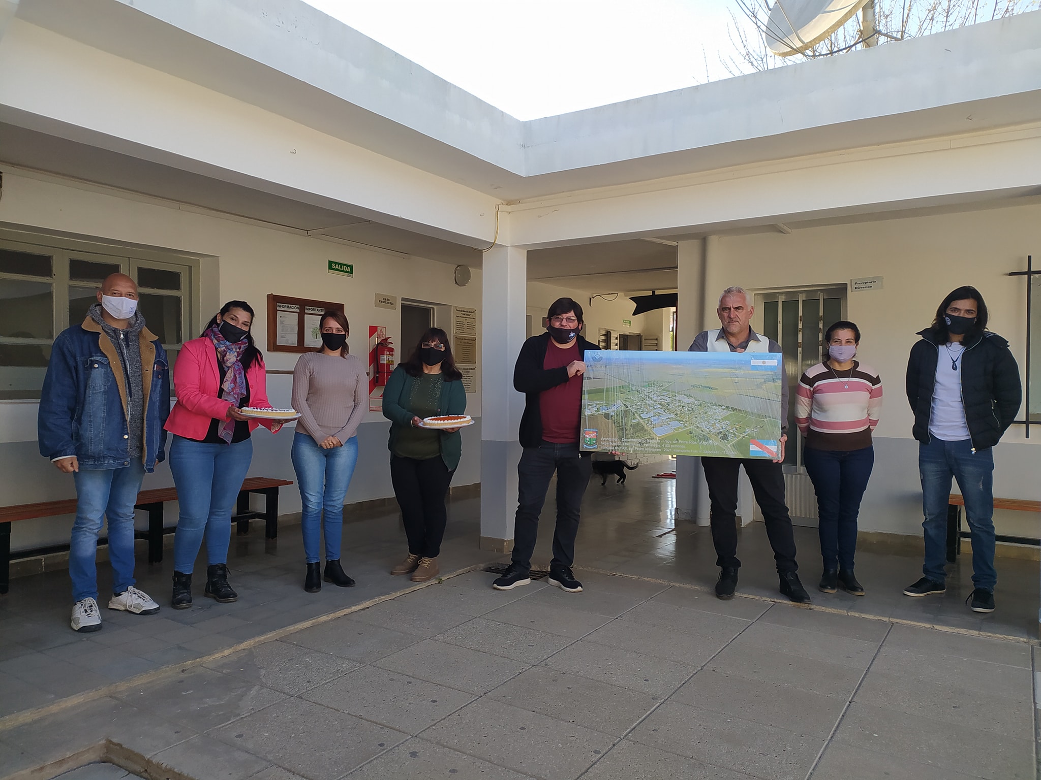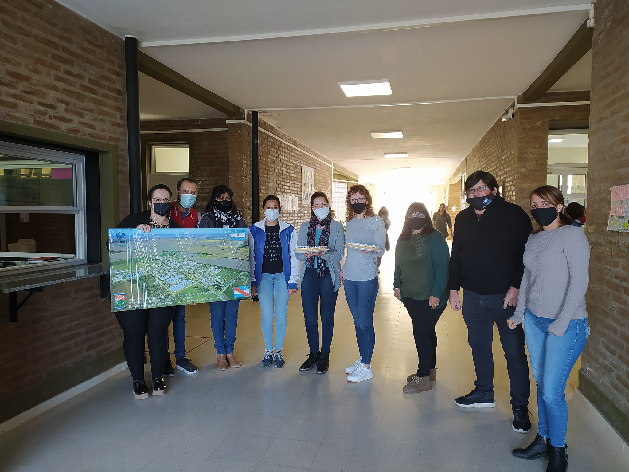 De esa manera, recorrieron las escuelas secundarias; N° 2 Hipólito Vieytes y la técnica N° 5, 14 de Febrero donde entregaron un presente dulce y el cuadro con la foto panorámica de la localidad.