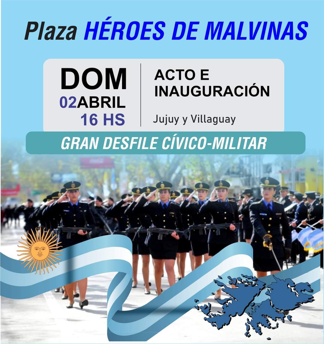 El próximo domingo 2 de abril se llevará a cabo el acto inaugural de la Plaza Héroes de Malvinas, ubicada en calles Jujuy y Villaguay de esa localidad del departamento Diamante.