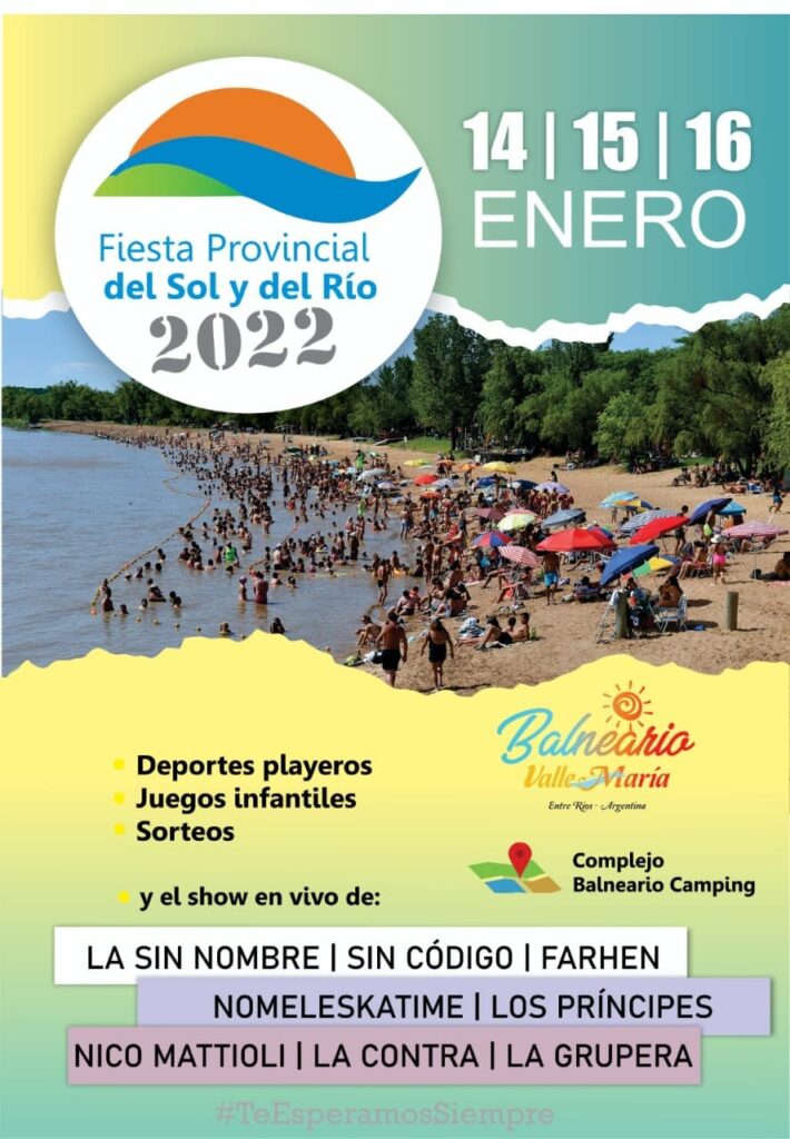 La localidad de Valle María se prepara para la tradicional Fiesta Provincial del Sol y del Río. La celebración junto al río, la playa y que cada año tiene mucha música y alegría, se realizará el viernes 14, sábado 15 y domingo 16 de enero